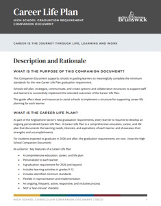 Career Life Plan Graduation Requirement – As part of the Anglophone Sector’s new graduation requirements, every learner will be required to develop an ongoing personalized Career Life Plan.