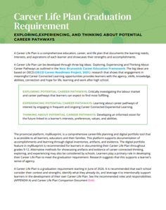 Career Life Plan Companion Document – This guide offers ideas and resources to assist schools to implement a structure for supporting career life planning for each learner.